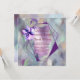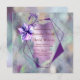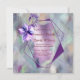 Adorável convite para casamento de vidro iridescente e flor roxa para seu dia especial elegante e moderno.