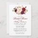 Cartão de Convite Floral para Cores Aquáticas Burgundy do Chá de panela Elegante