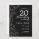 Convite de Aniversário de Casamento de 20 anos Preto e Branco Floral. Design moderno minimalista com desenhos de contorno botânico e fonte de letra script. Cartão de convite elegante perfeito para uma celebração sofisticada. Pode ser personalizado para qualquer ano de casamento. Convites impressos da Zazzle ou modelo digital para impressão instantânea.
