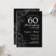 Convite de Aniversário de Casamento de 60 anos Floral Preto e Branco. Design moderno minimalista com desenhos de contorno botânico e fonte de letra script. Cartão de convite elegante perfeito para uma celebração sofisticada. Pode ser personalizado para qualquer ano de casamento. Convites impressos da Zazzle ou modelo digital para impressão instantânea.