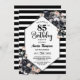 Convite Floral preto moderno com 85 º Festa de aniversário