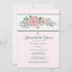 Um belo convite listrado, cor-de-rosa e branco, com um crescente de cinzas cor-de-rosa e de flores aquáticas e folhagem. Perfeito para qualquer sacramento religioso. A cruz em destaque pode ser removida fazer este convite versátil.