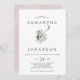 Este convite para casamento de romance floral é perfeito para um casamento elegante. A moderna design rusticidade apresenta flores românticas de aquarela em tons suaves de rosa-pincel e branco-creme com folhas verdes.