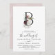 Este convite de casamento para a letra de romance floral B monograma é perfeito para um casamento elegante. A moderna design do bico rústico apresenta flores românticas a aquarela em tons macios de burgundy, mauve, rosa-pincel e branco-creme com folhas verdes.