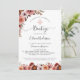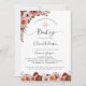 Convite de Batismo de menina em aquarela floral rosa com delicado arranjo floral no canto superior esquerdo e campo de flores na parte inferior do cartão em espanhol. O mesmo convite também está disponível em inglês. Flores em tons deslumbrantes e modernos de rosa blush, rosa poeirento, marfim, pêssego e burgundy. Verso do cartão em rosa blush com detalhe de flor na parte inferior. Convite com seção para detalhes da "Cerimônia" e "Recepção". Produtos coordenados disponíveis. Parte da nossa coleção de casamento e eventos "Heaven in Rose".