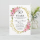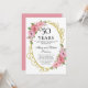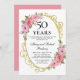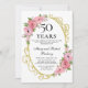Modelo de convite de aniversário de casamento de 50 anos elegante apresenta uma moldura dourada e dois arranjos de rosas cor-de-rosa. Todo o texto é editável.