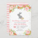 Convite Floral Rosa Floral e Coelhinho de Prata