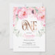 Convite Floral, Rosa, Garota, Primeiro Aniversário