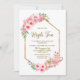 Celebre seu aniversário e convide seus amigos e entes queridos para um chá alto com este elegante convite de aniversário floral cor-de-rosa com estrutura geométrica de ouro. Você pode incluir qualquer idade no modelo de convite.