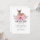 O doce "veado pequeno está virando um" convite de aniversário com flores cor-de-água rosa com verde e veado-bebê pintado à mão. Você pode personalizar o texto, o estilo da fonte, a cor e o tamanho em frente e atrás do convite.
