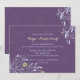 Um convite elegante com espirais e flores abstratas e graciosas na cor lavanda mais clara contra um fundo de ameixa mais escuro. Adequado para praticamente qualquer ocasião feliz.
