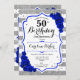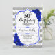 Convite Floral Royal Blue Silver Foto 50º Aniversário