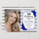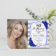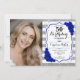 Convite Floral Royal Blue Silver White Foto 50º aniversári