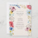 Convite para casamento de flor selvagem com flores silvestres de cor d'água. Esta design botânica russa tem uma bonito fronteira de flores silvestres, incluindo a margarida-de-papoila-dormideira, a cabeça-seca e o trevo. Uma floral moderna elegante com tema de jardim boêmico e feminino. Por favor, navegue na minha loja na coleção Charm de Flor Selvagem, para obter itens correspondentes