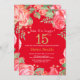 Convite Floral Surprise 15 Birthday Dourada Glitter e Red