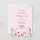 Um conjunto estilizado e caprichoso de flores silvestres ilustradas a rosa, com 16 em quatrefoil, para uma doce festa de aniversário de 16 anos. Design de estilo giro e doce. Personalize com suas informações de partido. Flores vermelhas, cor-de-rosa, verdes e roxas. imagem por pixel rastejante.