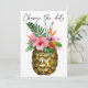As coisas mudam. Envie este cartão de mudança de data para alterar a data e, se necessário, o endereço e a hora do seu casamento ou evento. Floral tropical havaiano com abacaxi.