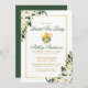 Cartão de Convite de Chá de Festa de Noiva com Aquarela Verde e Branco Floral Dourado - Verso Verde - Escrita Verde e Dourada