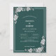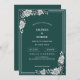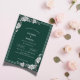 Celebre sua história de amor ao estilo do eterno com este Convite Floral Verde e Branco. Apresentando elegantes ilustrações de rosa branca em cada canto e um quadro de borda dupla, esta design atinge o equilíbrio perfeito entre encanto romântico e sofisticação clássica. O fundo verde esmeralda profundo fornece um rico contraste ao intricado trabalho de arte botânico, enquanto as fontes serif nítidas transmitem um tom formal e de escala superior. Ideal para casamentos de jardim, polícias elegantes e cerimônias tradicionais. Destaques da design: ilustrações florais brancas de Ornamentado (incluindo rosas e verde) em todos os quatro cantos Fundo verde escuro para uma aparência refinada e luxuosa Datipografia serifônica Formal com layout limpo e estruturado Colocação proeminente de detalhes de casamento e nota RSVP Perfeito para formatos digitais ou impressos Perfeito Para: Casamentos Elegantes ou tradicionais Jardim ou eventos de temas botânicos Casais buscando um equilíbrio de romântico e estética formal