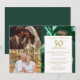 Este convite de aniversário de casamento de 50 anos floral verde esmeralda moderno e elegante pode ser personalizado com suas informações em tipografia elegante e duas fotos especiais. Criado por Thisisnotme©