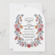This elegant vintage floral design features detailed botanical flowers arranged in a romantic wreath layout. Soft blush, coral, and muted blue tones create a timeless and refined aesthetic, perfect for engagement celebrations. The classic floral composition and balanced typography make this design ideal for couples seeking a graceful, garden-inspired look with a sophisticated vintage feel.