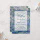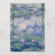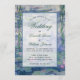 Esse convite botânico tem como pano de fundo um lírio-d'água pintado por Claude Monet (agora no dominio público). O texto está num retângulo branco transparente. A ocasião "Casamento" e os nomes são escritos em um roteiro caligráfico azul elegante, o restante em pequenos bonés pretos.