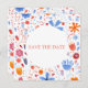 Convite Floral Watercolor Laranja Azul