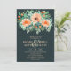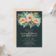 Elegante aquarela de flores em tons de pêssego a laranja aparada com lágrima a folha verde de jade em um fundo de chá escuro com seus detalhes de cerimônia de casamento em letras de pêssego pálido. Uma escolha moderna, mas simples, para qualquer convite de casamento. Mude o fundo para qualquer cor para corresponder ao seu tema de casamento. CORRESPONDENTE a itens na nossa coleção.