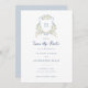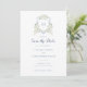 Floral White Dusty Blue Crest Save the Date Wedding Invitation. Traditional Wedding Invitation. White Flowers Greenery Wedding Monogram Crest Save the Date Card