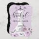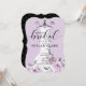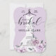 Anuncie sua queda no evento de chá de panela com nosso elegante, na moda e tenda chá de panela de jardim de lavanda floral para a futura noiva. A design apresenta o nosso vestido de noiva branco, elegante e moderno, pintado à mão, com um jardim botânico de rosas lavandas e flores florescentes. O vestido floral está pendurado em um cabide de roupas do estilo vintage. Os detalhes do local de flores suaves e as colações espumantes no vestido de noiva criam um belo, sofisticado e luxuoso olhar. Linda tipografia de escrita manual estilo script "Bridal". O verso apresenta um fundo preto minimalista com um padrão cardíaco lavanda que complementa maravilhosamente o trabalho de arte frontal. Todas as ilustrações contidas neste elegante chá de panela de vestido floral são obras de arte originais desenhadas à mão pela paparia de Moodthology.