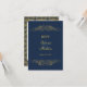Convite Floreio de Ouro Falso Damask Azul Marinho RSVP