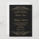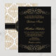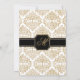 Copyright © Socialite Designs Inc. Personalize nosso convite de casamento com monograma de floreio e damasco dourado elegante para o seu dia especial. O design tem fonte de cor dourada brunida em fundo preto. Um modelo de convite lindo que pode ser personalizado para qualquer evento formal.