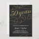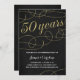 Este convite de festa de aniversário de casamento de 50 anos, sofisticado e elegante, apresenta floreios vintage elegantes, caligrafia cursiva que lê "50 anos", falso folheado a ouro e um fundo preto chic.