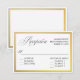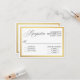 Um cartão de RSVP de casamento elegantemente belo com um texto de RSVP em letra cursiva caligráfica em espanhol. Edite a data de resposta e outros textos conforme desejar. Este design inclui seleções de opções de entrada para seus convidados. Edite o texto da entrada com suas opções (ou seja, carne, frango, vegetariano, etc). Você pode excluir este bloco de texto se não precisar dele. Uma ampla borda dourada cerca o texto em estilo moderno e sofisticado.