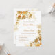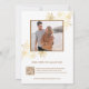 Este elegante convite de casamento de luxo traz IA criadas flores douradas tridimensionais e flores de arte de ouro em fundo branco. Com sua foto e um código qr digitalizável para seu site de casamento na parte de trás. Nomes de noiva e noivo em um elegante roteiro escrito à mão.