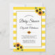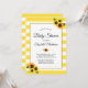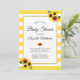 Este alegre design moderno apresenta os girassóis num fundo de listras brancas e amarelas brilhantes. No centro está uma área branca de cor dourada contendo o texto personalizável para o seu evento em tipografia popular e elegante. A parte traseira inclui dentro de informações personalizáveis do registro de um círculo denteado a ouro no centro.