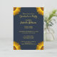 Convite Flores Amarelas no Monograma de fundo azul Marinho