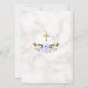 Design de cartão elegante com flores azuis delicadas, cor d'água, brilho dourado falso, trama quebrada e confete, cruz dourada falsa, sobre fundo de mármore branco. Na parte de trás, buquê de flores azuis e cruz dourada. Use a ferramenta Personalizar para adicionar suas informações, alterar fontes, cores da fonte. Para obter itens correspondentes, visite minha nova coleção de celebrações Baptism/Christening.