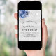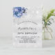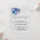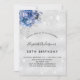 Para um elegante aniversário de 18 anos (ou qualquer idade). Um fundo metálico na moda faux prateado. Decorado com poeira cintilante e flores azuis. Personalize e adicione um nome, idade e detalhes da festa. O nome é escrito com um script de estilo manuscrito
