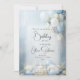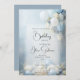 Flores e balões, azuis e brancos, empoeirados, para um convite de comemoração de aniversário, acentuados com caligrafia de estilo manuscrito. Use nossa modelo fácil de personalizar para personalizar com seus detalhes - uma Design de impressionante © por WhimsicalArtwork™
