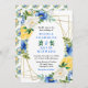 Convite Flores Azuis e Amarelas com Folhagem para Casament