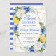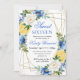 Convite Flores Azuis e Amarelas Frame Dourado Sweet 16