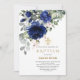 Design de Batismo com Flores Azuis Marinhos Únicas. Apresenta delicadas flores azuis-d'água, marinho, buquê e coroa, cruz dourada esfolada, lindas fontes; no fundo, nome e evento floral do coração, tudo sobre fundo branco. Use a ferramenta Personalizar para adicionar suas informações. Para encontrar itens, por favor, visite a minha Encantadora coleção de eventos religiosos.