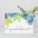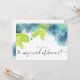 Flores azuis etéreas e estilo cursivo de escrita manual caligrafia casamento floral de primavera "Você será minha madrinha de casamento?" Esta adorável design apresenta flores azuis e lacrimejantes com folhas verdes.