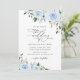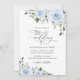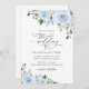 Convide amigos e família em estilo e dê o tom para seu dia especial com este encantador convite para o casamento. Design apresenta flores azuis poeirentas de cor d'água e verde sobre fundo branco.