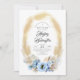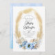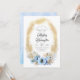 Folhas de palma secas, erva-pampas e flores azuis empoeiradas, convite para batismo.