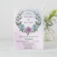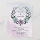 Convite de casamento único com flores românticas em tons de roxo e azul empoeirados e folhas verdes