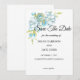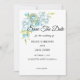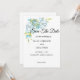 Cartões de Anúncio de Casamento de Flores de Jardim Azuis. Estes são projetados com um aglomerado de flores em aquarela, incluindo rosas, hortênsias e folhagens.