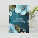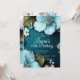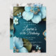 Flores azuis verde deixa brilho dourado Aniversário Convite