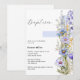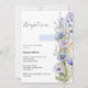 Um fundo branco, com uma grande cruz azul claro decorada com flores azuis. Personalize e adicione o nome e detalhes detalhes.